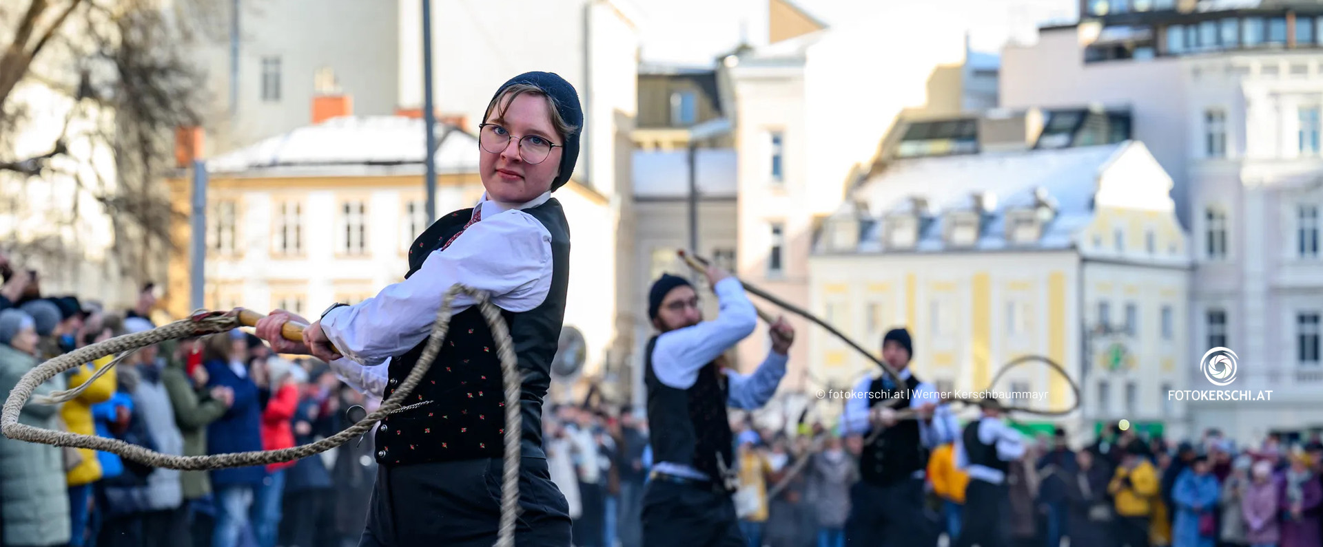 Musikalisch umrahmt wird das Aperschnalzen vom Linzer Bläserquartett, das festliche Bläserweisen im Rahmen eines Turmblasens vom Turm des Linzer Landhauses erklingen lässt.
