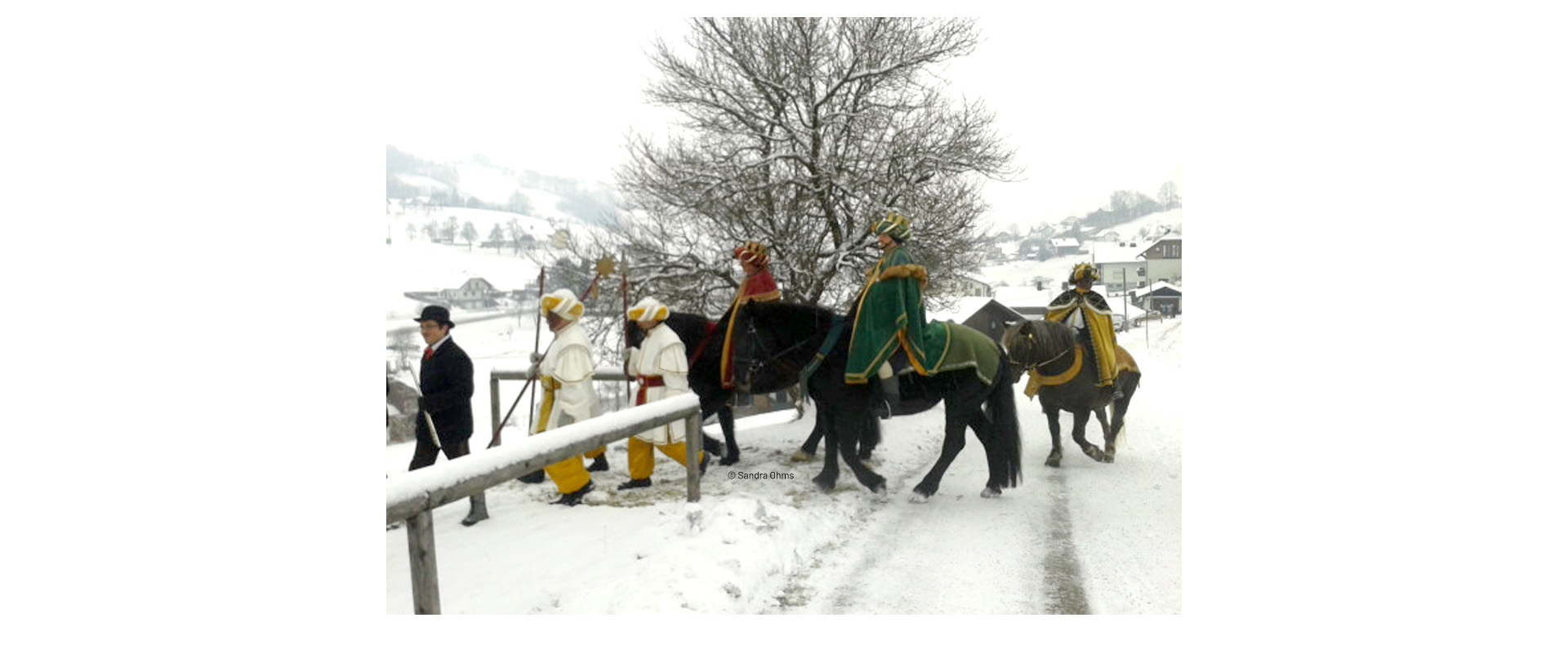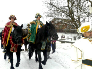 Hoch zu Ross sind die als Hl. Drei Könige kostümierten Sänger in manchen Gemeinden unterwegs, in ihrem Gefolge sind ein Sternträger, musikalische Begleiter und Fackelträger anzutreffen. Sie singen Hirten-, Neujahrs- und Dreikönigslieder und überbringen den Dreikönigssegen und ihre Neujahrswünsche.