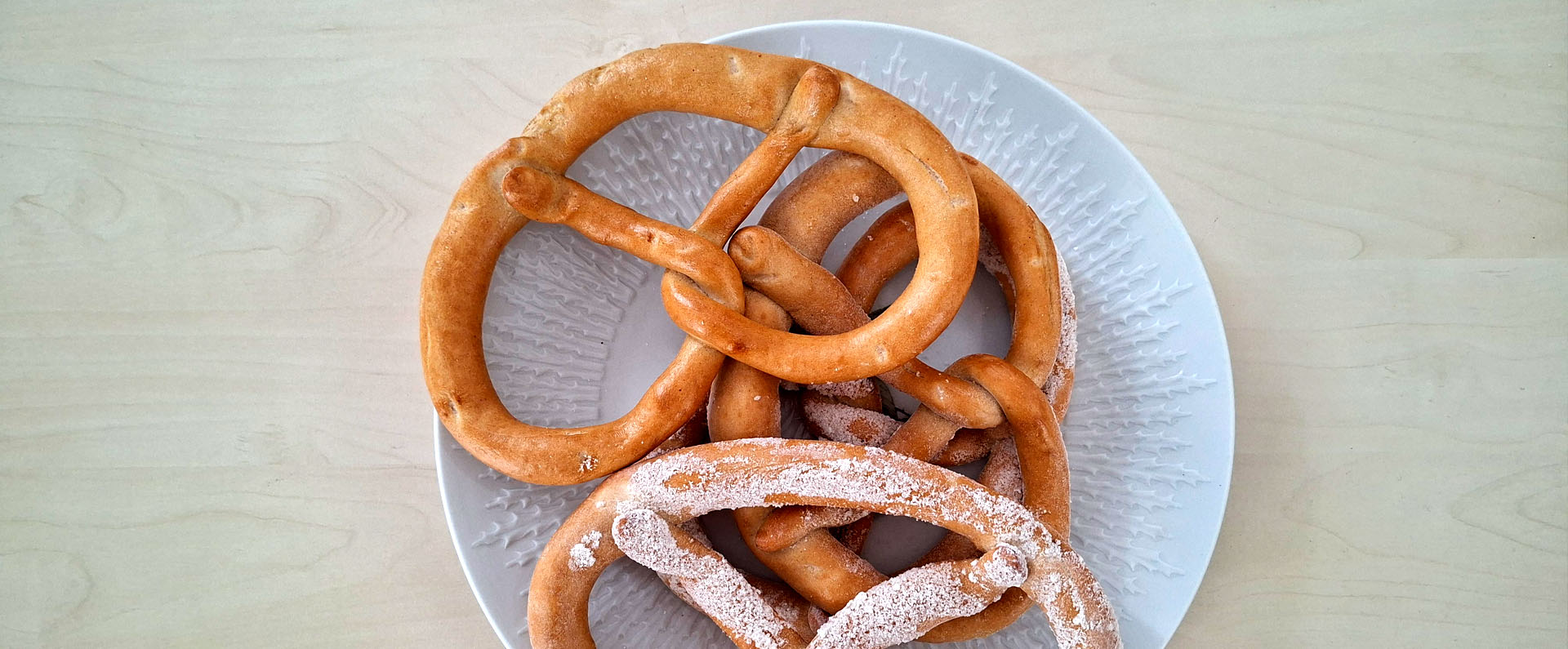 Brezen sollen übrigens an verschränkte Arme als Gebetshaltung erinnern, die Form des Beugels dürfte älteren Ursprungs sein. Rundes Gebäck symbolisiert jeweils die Sonne, das Licht und somit das Licht der Welt – den auferstandenen Jesus.