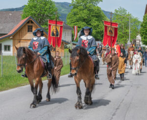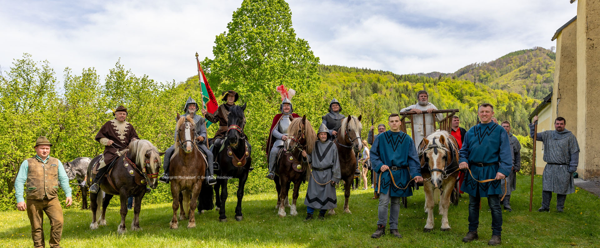 Dabei können sich die Reiter in verschiedenen Disziplinen mittelalterlicher Spiele messen und ihre Geschicklichkeit unter Beweis stellen: Kranzlstechen (einen herabhängenden Kranz mit Hilfe eines Stockes erringen), Türkenstechen (eine Figur mit einer Lanze in Drehung versetzen), Fasselschlagen (beim Vorbeigaloppieren mit einem Spieß ein aufgestelltes Fass zerschlagen), Blochziehen (einen Baumstamm ziehen), Galopprennen. In Micheldorf wird der Reiterumzug als historische Ritter-Schau abgehalten.